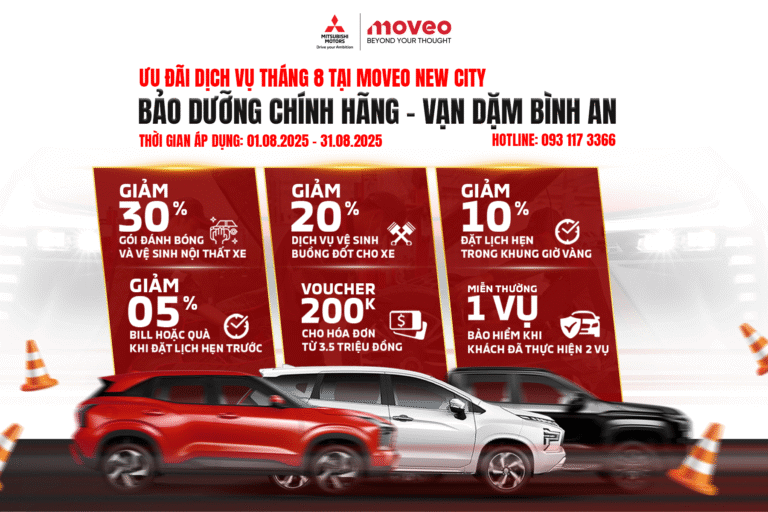 ƯU ĐÃI DỊCH VỤ BẢO DƯỠNG VÀ CHĂM SÓC XE THÁNG 8 TẠI MITSUBISHI MOTORS – MOVEO NEW CITY